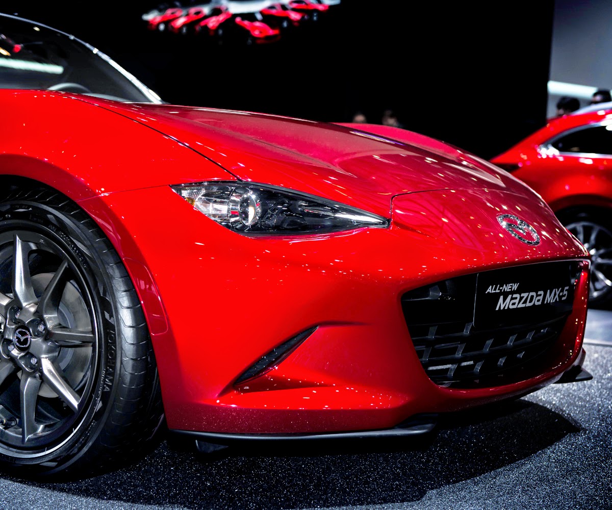 Mazda's stand is being used to showcase the new urban crossover CX-3 model which makes its European debut here. Alongside this there are minor facelifts for the Mazda 6 and CX-5 to bring them up to date with the latest models. The little Mazda 2 is there, and another preview of a Soul Red MX-5 looking rather sharp under the lighting.